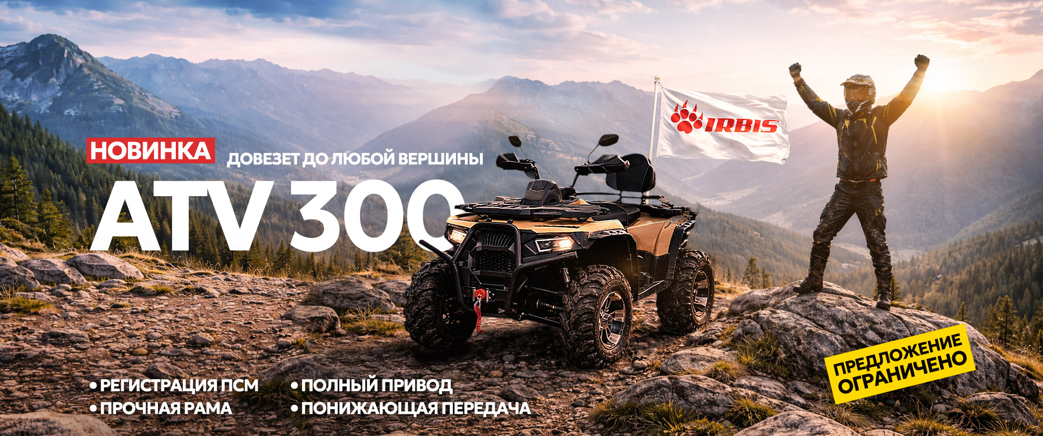 Мы предлагаем не просто технику, а возможность стать частью мотосообщества, интересную и яркую жизнь, наполненную драйвом, новыми впечатлениями и ощущением полной свободы над временем и обстоятельствами. ИРБИС - техника доступная для каждого!